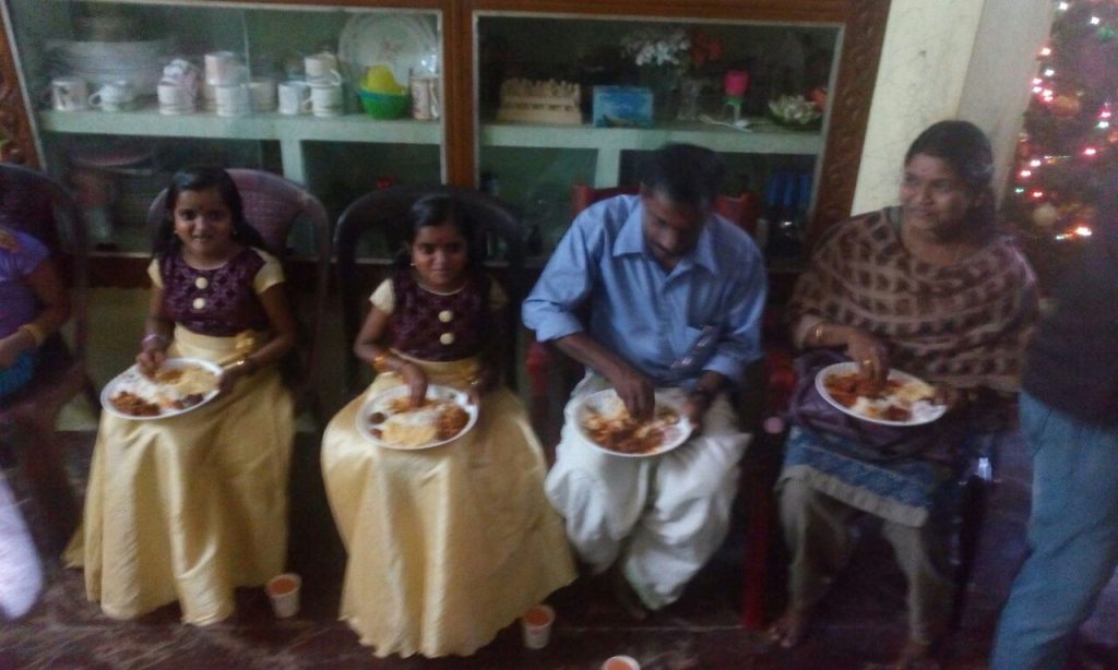 I-Believe Project Managers Sujith Koshy and Alex Thomas worked with our local Teacher Suja.S to organize this mini Christmas Shopping and Lunch. The group invited the kids and their parents to Sujith’s house where the family arranged the lunch and some goodies. The kids and parents were so happy to be part of the warm family Christmas celebration. I-Believe is looking forward to hosting a similar Holiday event every year. This is a project that many of us could easily implement in our hometowns during local festivals.